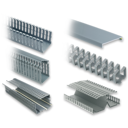 Our line of patented wiring duct solutions that can save you space, time and cost in a control panel build. Featuring type DRD din rail duct, type G/EMI shielded wiring duct, type CWD corner wiring duct and type FL flexible wiring duct. Also offered is type SD noise shield divider wall.